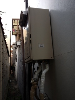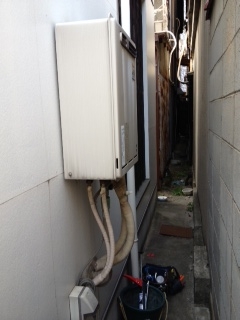 家の裏での取替え工事でした。 排気と壁が近いので上方排気カバーを施工しました。 既存:リンナイRUF-V2405SAW 現在:リンナイRUF-A2400SAW 上方排気カバーROP-A301
