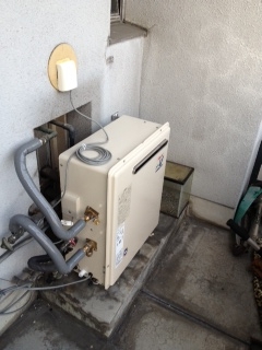 公団のベランダでの取替え工事でした。 既存の機器よりもコンパクトになります。 既存:ノ-リツGRQ-162SA 現在:リンナイRFS-A1610SA