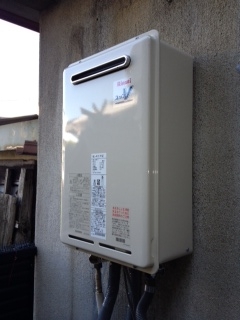 家の裏での取替え工事でした。 高温差し湯タイプです。 既存:TOTO RGH16SBDB 現在:リンナイRUJ-V1611W