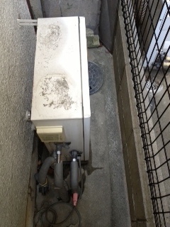 家の裏での取替え工事でした。 既存の給湯器は隣接タイプでした。 追い焚き工事をして据え置きタイプへ取替えしました。 エコジョーズタイプです。 既存:ナショナルGU-C20R1 現在:リンナイRUF-E2004SAG