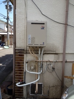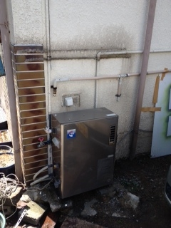 家の横手での取替え工事でした。 既存の機器は石油式給湯器でした。 隣接タイプから壁掛けタイプへ交換しました。 既存:石油式給湯器 現在:リンナイRUF-A2400SAW