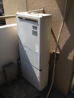 マンションベランダでの取替え工事でした。 据え置き設置から壁掛けへの交換でした。 追い焚きアダプター取替えも同時施工しました。 既存:ナショナルAD-248RA-Q 現在:リンナイRUF-A1610SAW