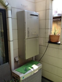 3階ベランダでの取替え工事でした。 既存の機器よりもコンパクトになっているので、配管に合わせて取り付けしました。 暖房機能付きエコジョーズタイプです。 既存:不明 現在:リンナイRVD-E2401AW2-1 配管カバーROP-P101