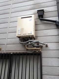家の裏での取替え工事でした。 3.5mぐらいの高所作業でした。 24号オートタイプの取替えです。 既存:不明 現在:リンナイRUF-A2400SAW
