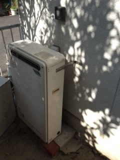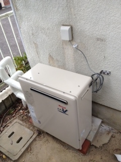 隣接タイプなので家の裏での取替え工事でした。リンナイ24号浴室隣接タイプへの取替えでした。