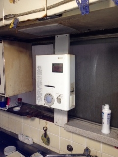 湯沸かし器の取替え工事でした。 リンナイの元止めタイプへの取替えでした。 既存:不明 現在:リンナイRUS-V51YT