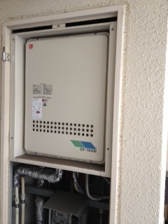 マンションパイプスペースでの取替え工事でした。リンナイ16号追い焚き機能付き後方排気タイプへの取替えでした。 PS枠も同時施工しました。 既存:ノ-リツGT-165W 現在:リンナイRUF-A1610SAB PS枠UOP-P030