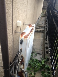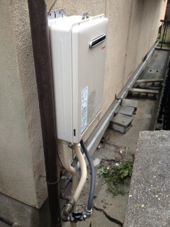 家の裏での取替え工事でした。浴室隣接タイプからリンナイ16号給湯専用壁掛けタイプへの取替えでした。 追い焚き閉栓工事も同時施工しました。 既存:不明 現在:リンナイRUX-A1611W-E