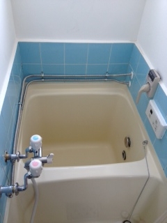 ベランダ部分での取り付け工事でした。リモコン新設、電源工事、ガス工事、水栓取り付けも同時施工しました。