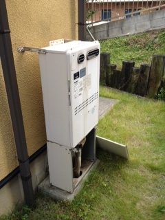 家の横手での取替え工事でした。リンナイ24号追い焚き機能付き給湯器への取替えでした。 据置台も同時施工しました。 既存:不明 現在:リンナイRUF-A2400SAW 据置台ROP-A201