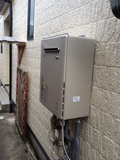 家の横手での取替え工事でした。リンナイ24号追い焚き機能付きエコジョーズタイプへの取替えでした。
