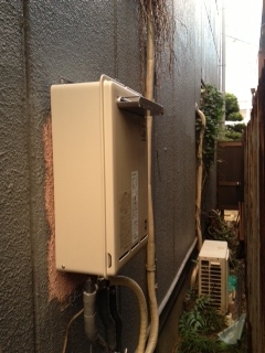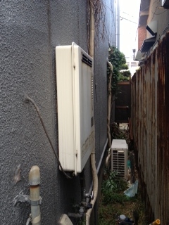 リンナイ20号給湯専用への取替えでした。 取り付け場所が狭い為、上方排気カバーも同時施工しました。 既存:チョウフGK-164K 現在:リンナイRUX-V2018W 上方排気カバーUOP-G301-24