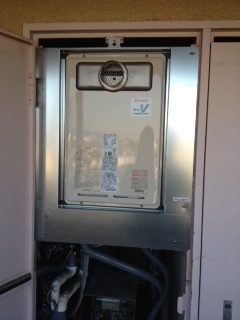 マンションパイプスペースでの取替え工事でした。リンナイ16号高温差し湯タイプへの取替えでした。