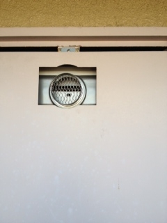 既存の暖房配管閉栓、排気筒の形状が変わる為PS扉穴あけ加工も同時施工しました。既存:ナショナルAD-248RFBJ-C