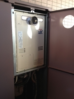 パイプスペースでの取替え工事でした。リンナイ24号暖房機能付き給湯器への取替えでした。