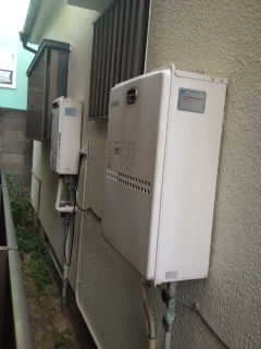 家の横手での取替え工事でした。16号給湯専用と追い焚き専用機器を撤去してリンナイ16号追い焚き機能付き給湯器への取替えでした。