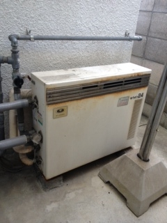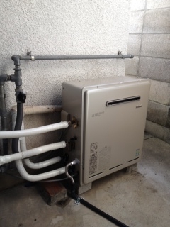家の裏での取替え工事でした。リンナイ24号追い焚き機能付きエコジョーズ据置タイプへの取替えでした。 排水配管工事も同時施工しました。 既存:ノ-リツGT-242AR 現在:リンナイRUF-E2401SAG