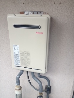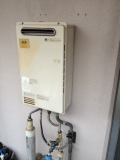 ベランダでの取替え工事でした。リンナイ20号給湯専用オートストップ機能付きへの取替えでした。 既存:不明 現在:リンナイRUX-A2010W-E
