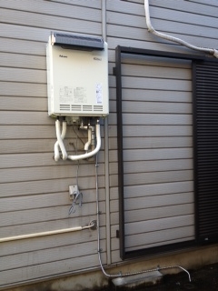 家の横手での取替え工事でした。パロマ24号追い焚き機能付きエコジョーズタイプへの取替えでした。 上方排気カバーも同時施工しました。 既存:不明 現在:パロマFH-E244AWADL(E) 上方排気カバーHKAWAD-4