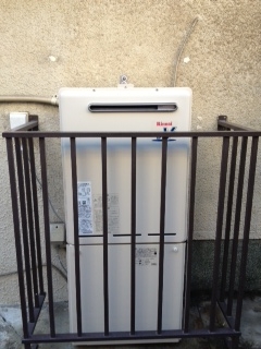 家の玄関横での取替え工事でした。リンナイ20号追い焚き機能付き給湯器への取替えでした。