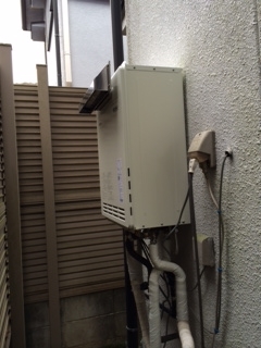 家の横手での取替え工事でした。パロマ24号追い焚き機能付きエコジョーズタイプへの取替えでした。 上方排気カバーも同時施工しました。 既存:ノーリツGT-2000SAW 現在:パロマ FH-E244AWDL(E) 上方排気カバーHKAWAD-4