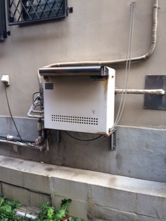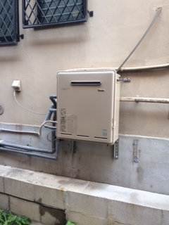 家の裏での取替え工事でした。リンナイ20号エコジョーズ追い焚き機能付き給湯器据置タイプへの取替えでした。 壁取付け台の打ち変え、排水配管も同時施工しました。 既存:ノーリツ 現在:リンナイRUF-E2004AG