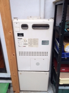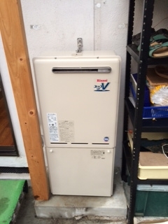 家の裏での取替え工事でした。リンナイ16号追い焚き機能付き給湯器への取替えでした。 浴室暖房乾燥機、暖房配管の撤去も同時施工しました。 既存:ノーリツ 現在:リンナイRUF-A1610AW 据置台ROP-A201