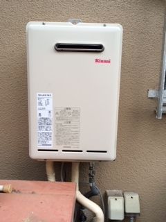 家の裏での取替え工事でした。リンナイ16号給湯専用給湯器への取替えでした。