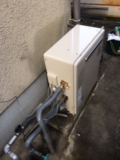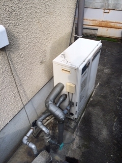 家の裏での取替え工事でした。リンナイ20号追い焚き機能付き給湯器隣接設置タイプへの取替えでした。 既存:ノーリツGRQ-1627SAX 現在:リンナイRFS-A2003SA