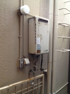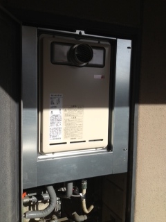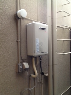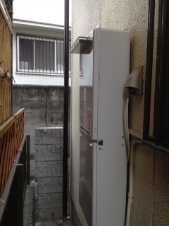 もともと、隣接タイプの給湯器がついていたのですが、設置フリータイプ壁掛けの給湯器に取り替えさせていただきました!