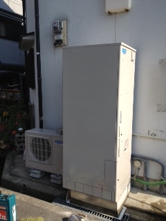 既存の給湯器ナショナル製給湯器GJ-S16T1から新しい給湯器三菱製自動冷媒CO2家庭用ヒートポンプ給湯器SRT-HPT37W7への取替え工事をさせていただきました!