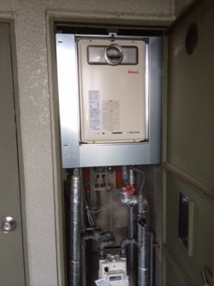 隣接タイプの給湯器だったのですが、追い焚き配管の位置が、若干づれての取り替え工事だったので、配管延長アダプターも取り付けました。