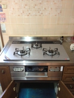 コンロは、コンロ下からキッチン下の扉上まで隙間があった為下部フィラーも一緒に取り付けました!