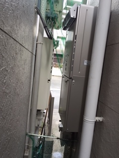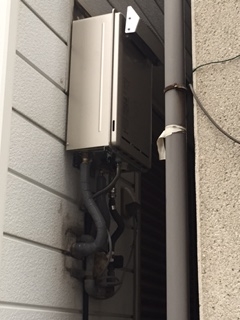 家の裏での取替え工事でした。リンナイ24号暖房機能付き給湯器エコジョーズタイプへの取替え工事でした。